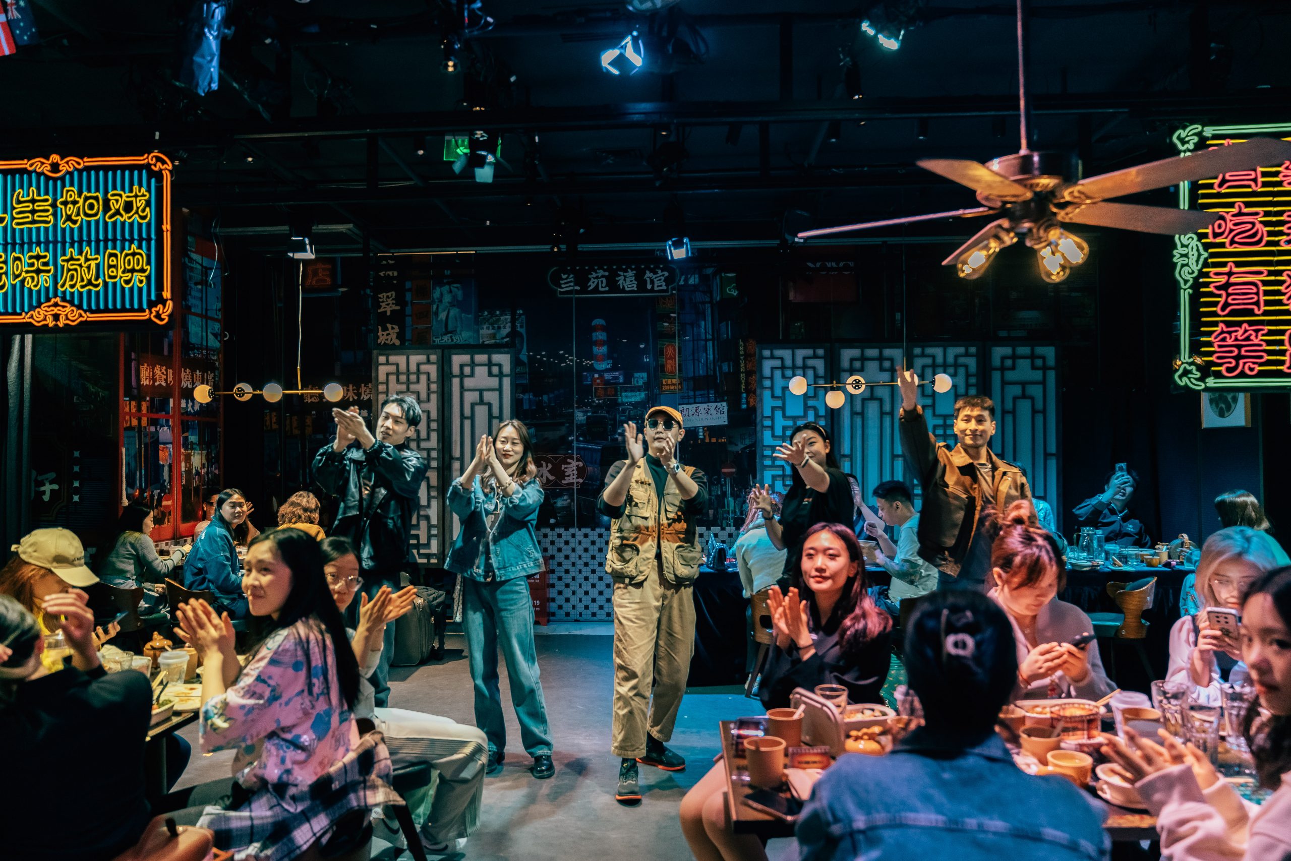 作品通过荧幕、场景、餐食和现场演艺的交互,尽可能将影片的 “味道” 融人现实,让都市文艺男艾活在片中,参与一场可以吃喝不同寻常的观影活动。